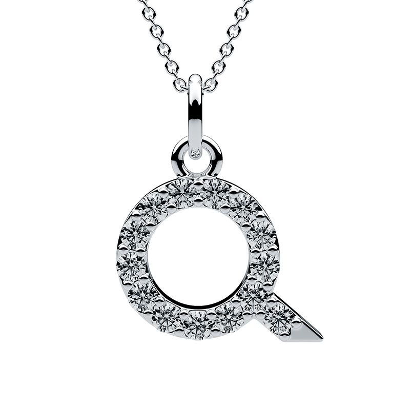 The Initial Pendant Q necklace is an elegant and timeless product that demonstrates a delicate and intricate design and features its diamonds in a shared prong setting. Available in 18ct white, rose and yellow gold, or 950 platinum.