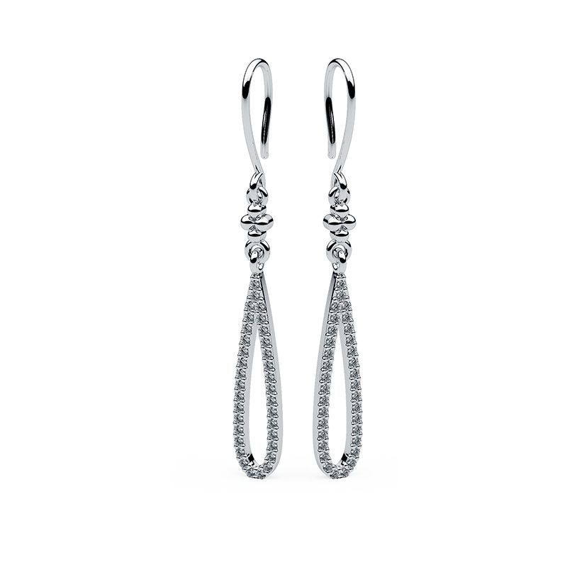 The Lucy Earrings feature an elegant elongated drop design, pavé-set with round brilliant-cut diamonds for striking sparkle and movement. Available in 9ct or 18ct white, rose, or yellow gold, or in 950 platinum, these fancy diamond drop earrings are designed to elevate any evening ensemble.