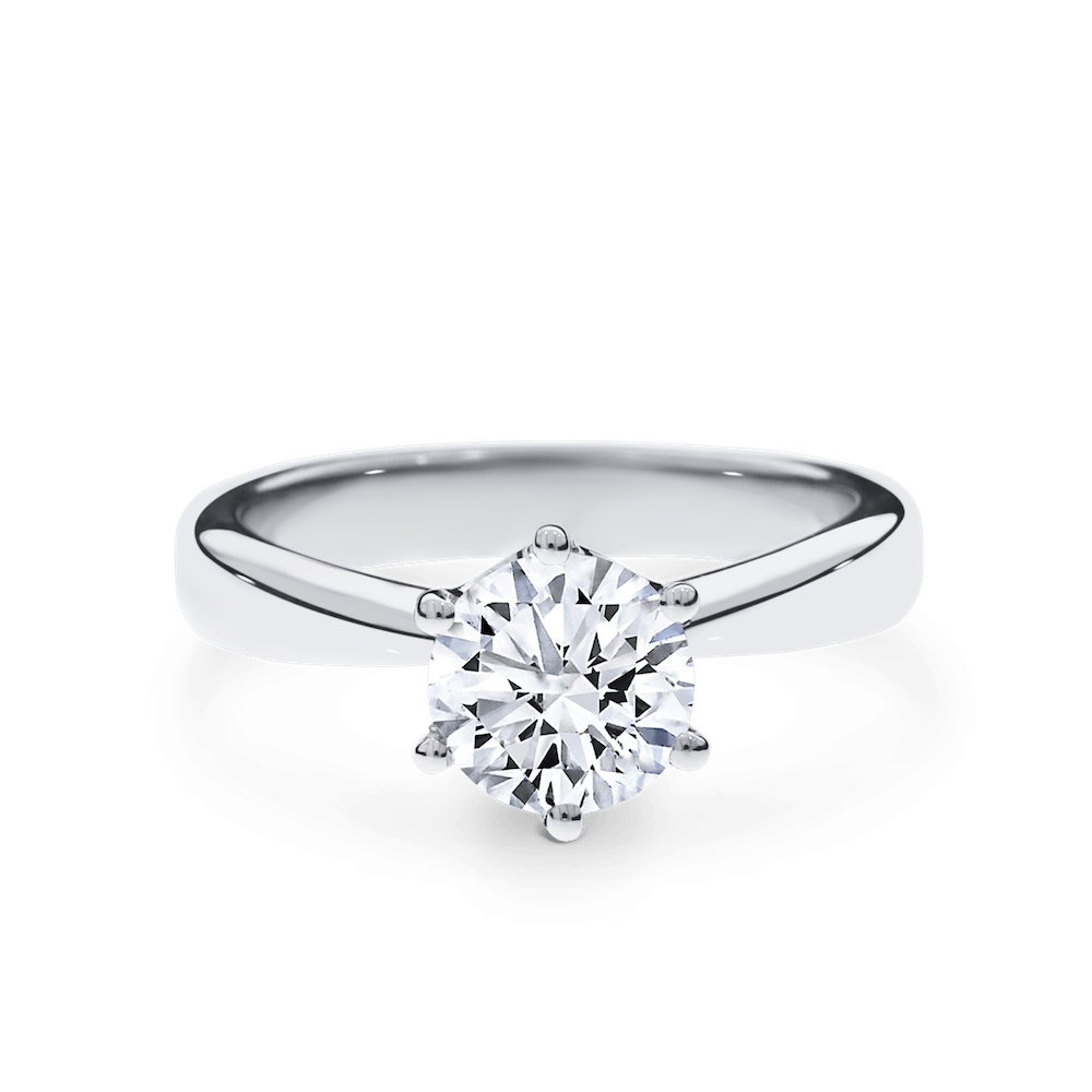 Round Brilliant Cut Solitaire with tapered band and heart setting detail.