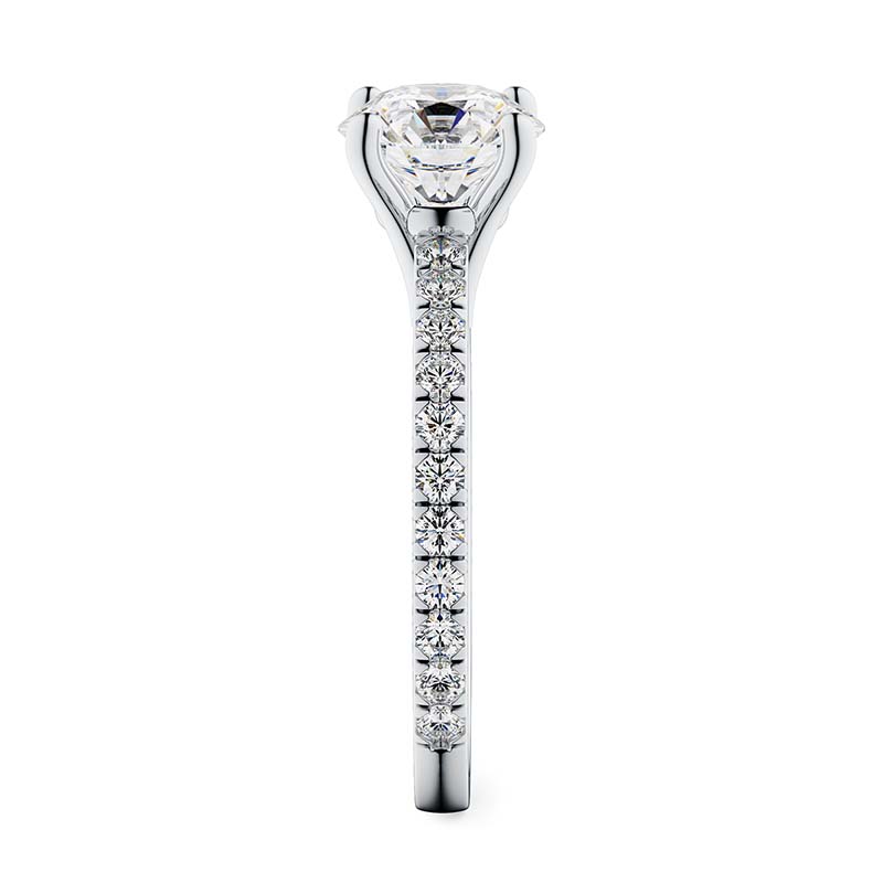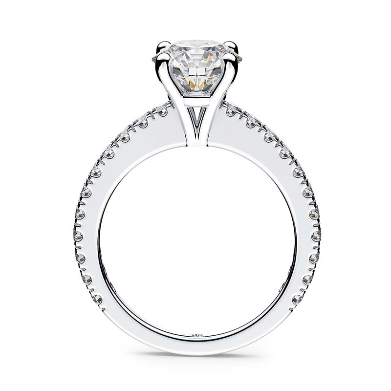A timeless masterpiece that captures hearts with its classic four-claw setting and delicately claw-set band. Crafted with precision and elegance, this ring symbolises purity and enduring love. Meticulously handcrafted with the finest conflict-free diamonds and customizable to your unique style, it embodies refined taste and commitment. The Sia is not just a piece of jewellery; it’s a promise, a symbol of timeless love that conveys devotion with grace and elegance.